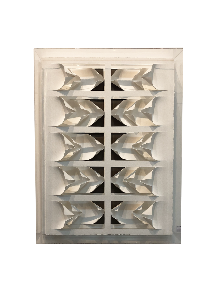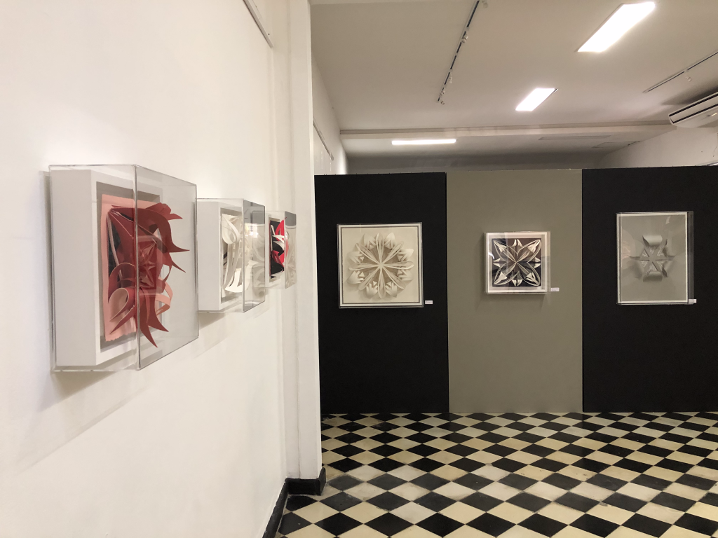 La muestra estuvo conformada por 22 obras en mediano y pequeño formato como un reflejo nítido de la expresión de la artista a través de anécdotas que emergen de la apacible superficie del papel, originando relieves y profundidades.